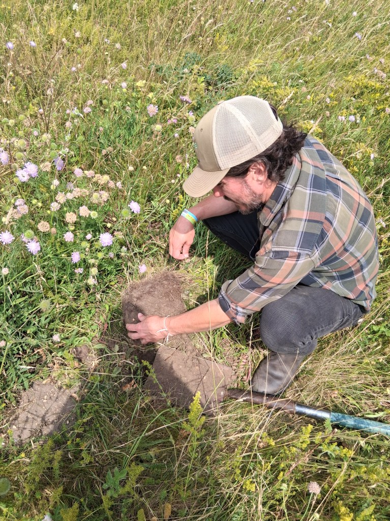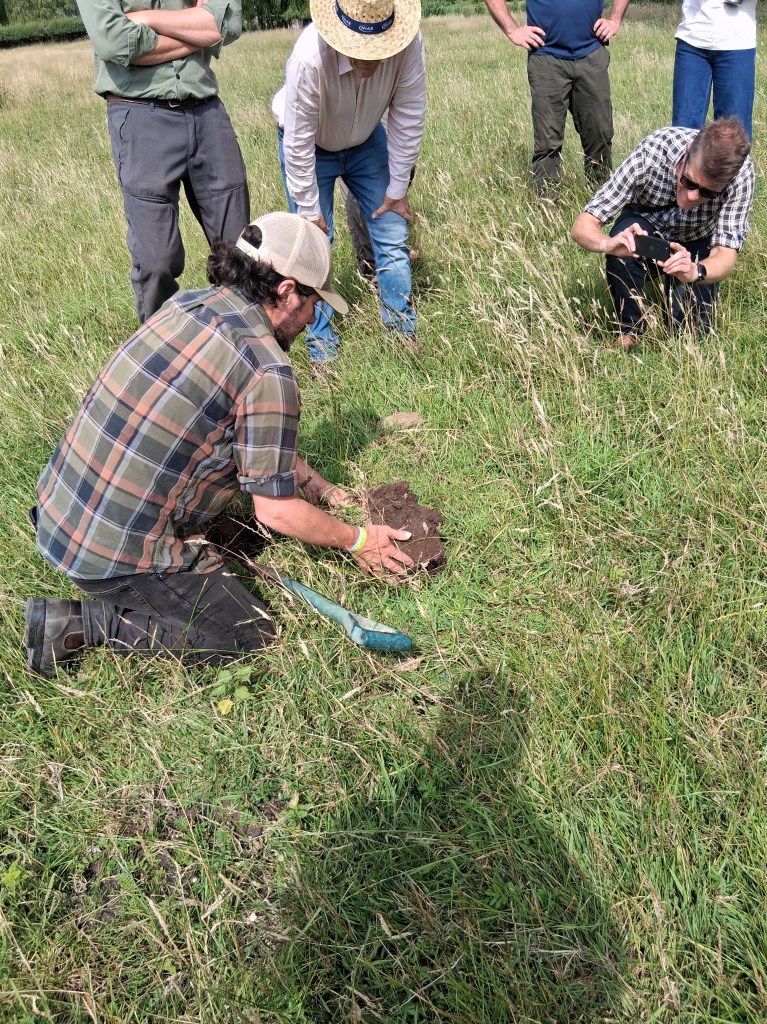 This was the message we explored with the world renowned soil health educator Joel Williams. A big thanks to Anglian Water for sponsoring Joel’s attendance. Holding such an exciting event was the beautiful Bintree Mill (with thanks to the team for hosting us). After some lecture and discussion time in the grain store we went out into a standing crop of rape, the wildflower meadow and a permanent (never ploughed) pasture which is occasionally grazed by sheep. The difference between the soils, even metres from each other, was clear to see (and smell!)