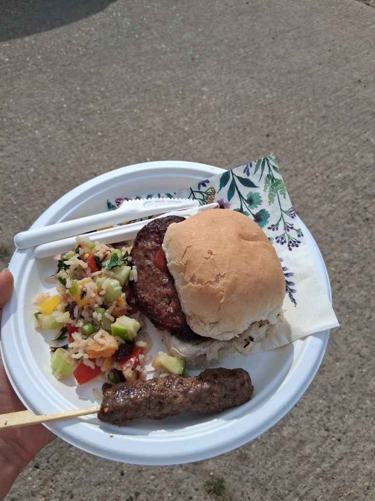 Following the fascinating discussion we were treated to a delicious spread of venison skewers and beef burgers from our very own grazier (with thanks to the Savory Beef team) and some tasty salads (with thanks to my very own mum!)