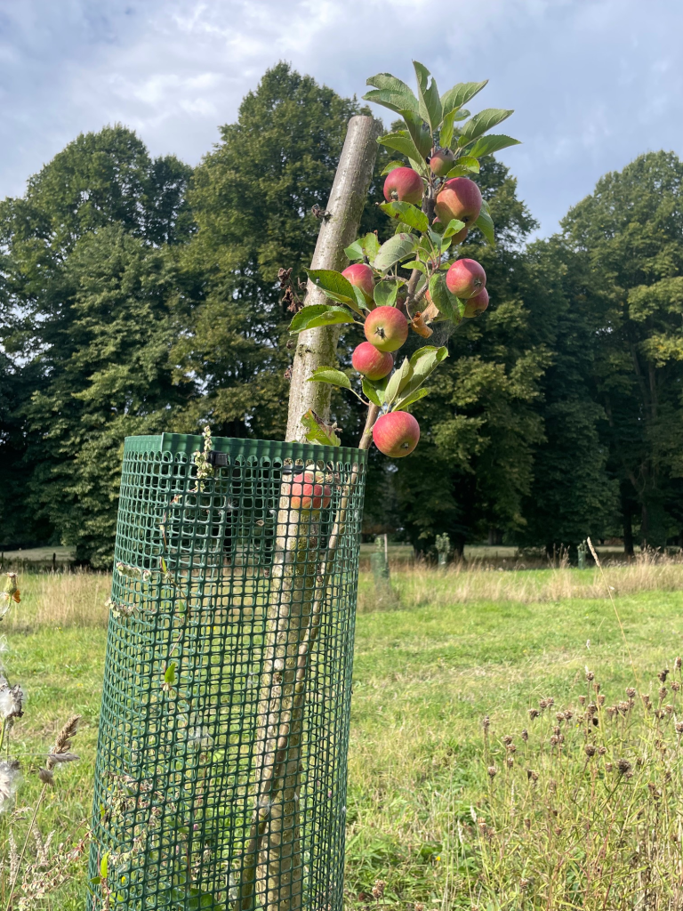 The new orchard (planted this year) looks good. We have lost only about 3 trees out of the 100 planted but we have watered 16 times (and counting). Some have already fruited and the fruit has been removed; the trees are too young to support the crop.