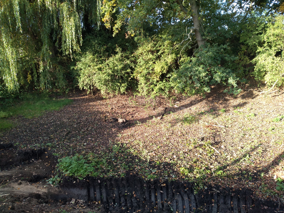 We took advantage of the mild autumn to self-fund a pond clearance. This pond was heavily silted and shaded. As a receiver of water from land drains and stormwater runoff, the pond serves to prevent flooding and erosion and to improve the quality of water as it makes its way towards the River Wensum.